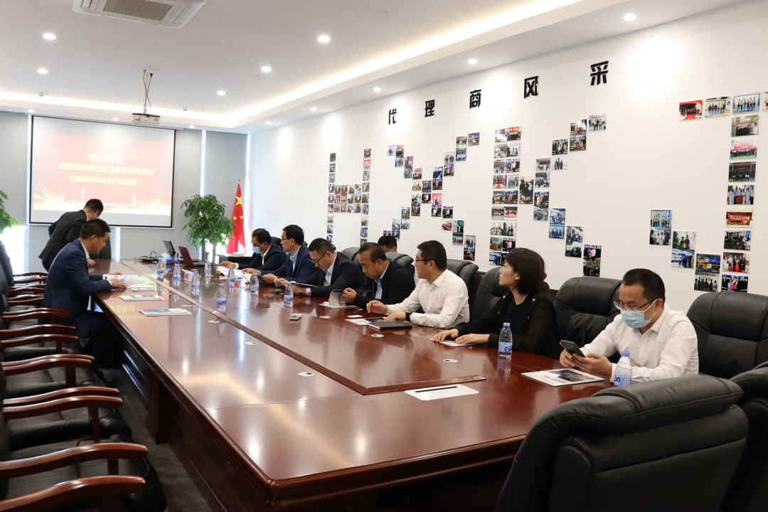 2021年11月29日,陕西省宝鸡市陈仓区商务局领导莅临参观指导,在李总和谢总的接待陪同下观看了电保产品的讲解。